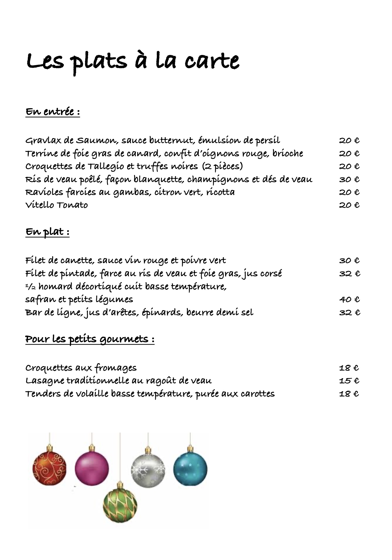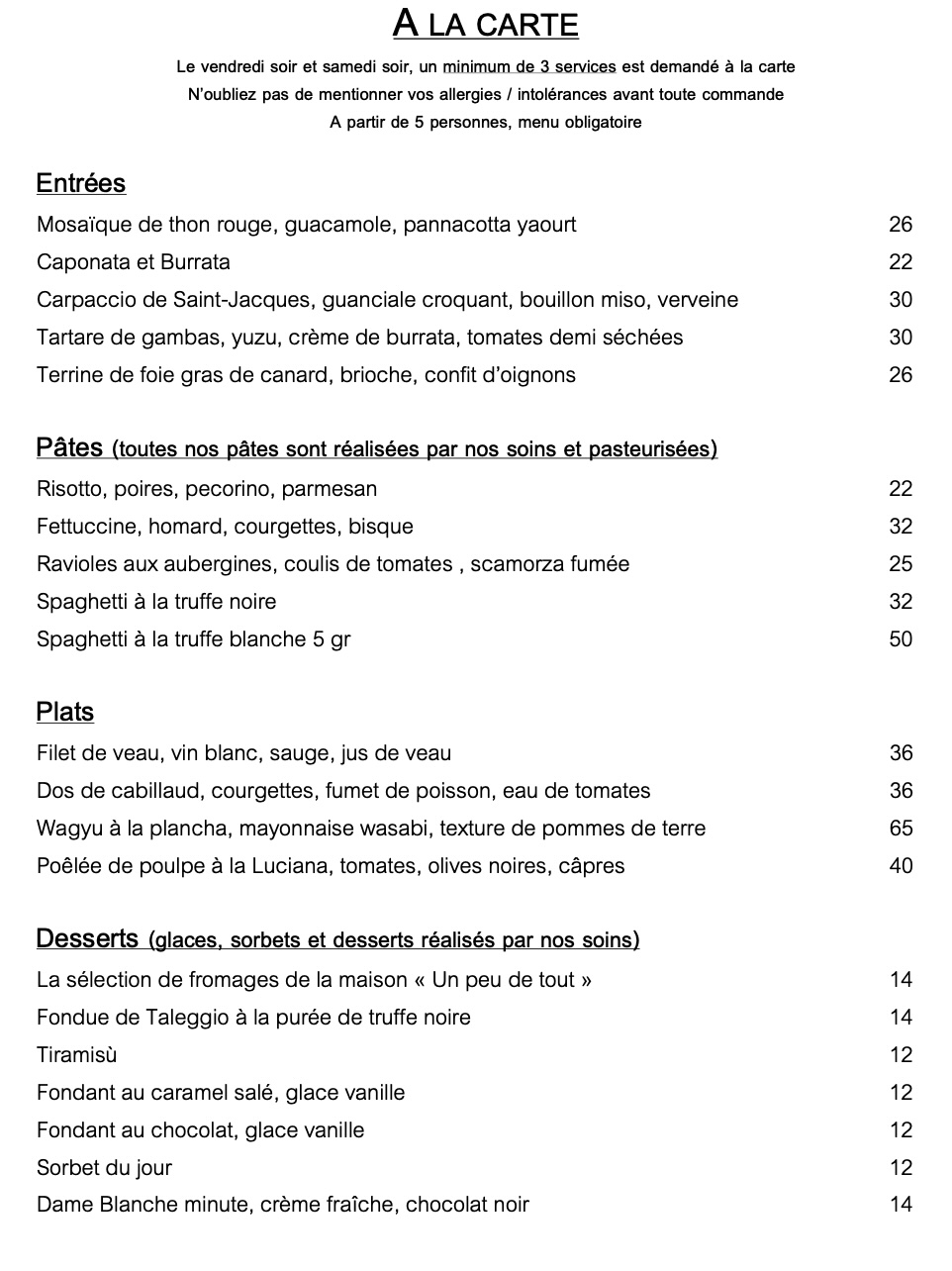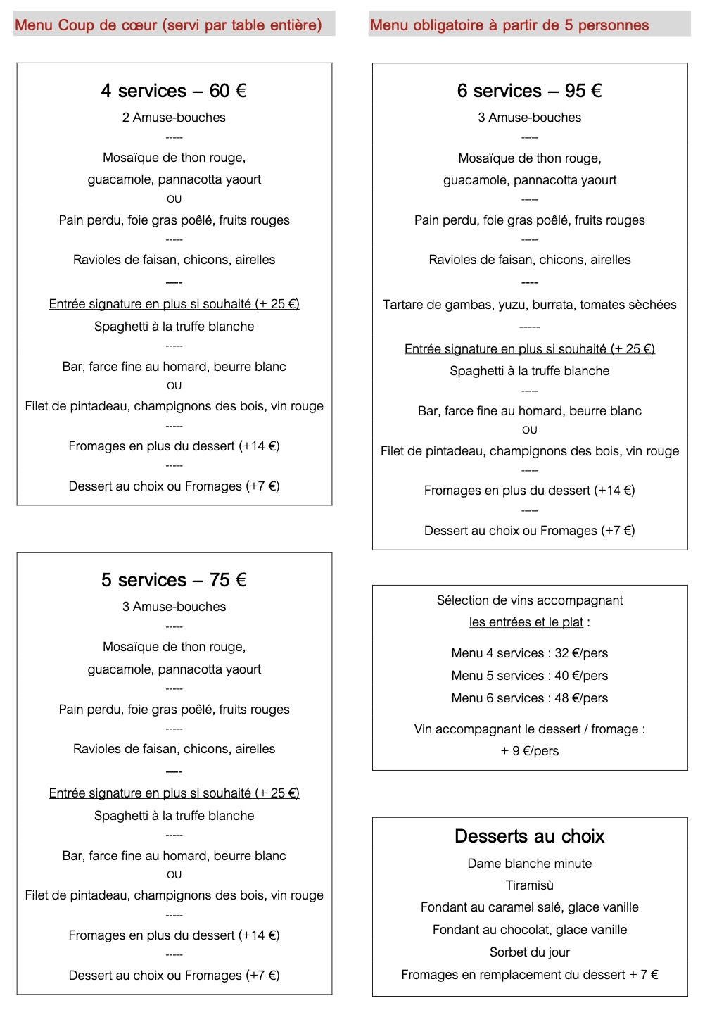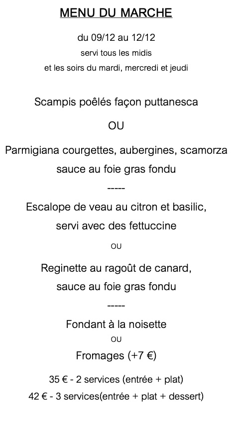Un menu du marché/lunch renouvelé chaque semaine et servi midi et soir du mardi midi au vendredi midi