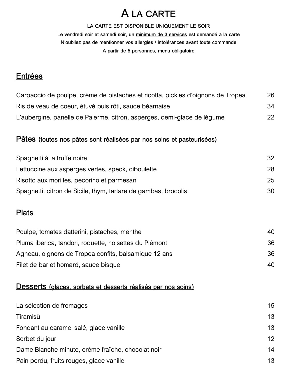 Une carte et un menu renouvelés régulièrement