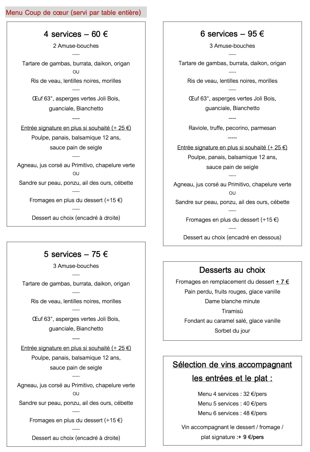 Menu coup de coeur disponible à tous les services